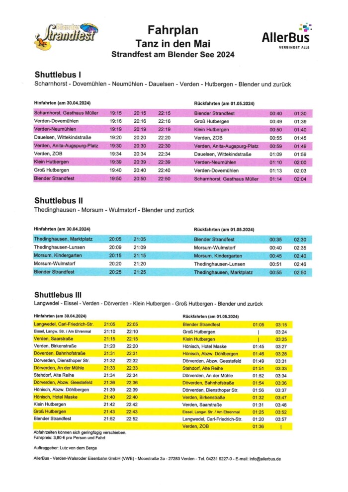 Fahrplan für den 30. April