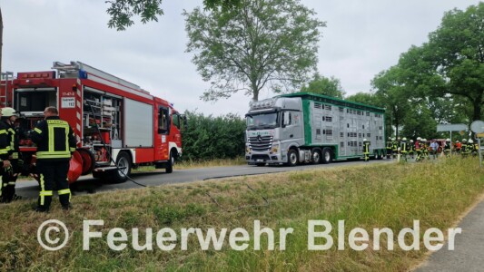 Zum Glück konnte nach Eintreffen am Einsatzort aber schnell festgestellt werden, dass der Schweinelaster nicht brannte, sondern vermutlich heiß gelaufene Bremsen oder ein elektronisches Problem die Ursache für die Rauchentwicklung waren. Der Schweinelaster fuhr zurück zum ortsansässigen Schweinestall. Dort halfen wir noch beim Abladen der Schweine. Der Schweinelaster verblieb vor Ort, so dass die Feststellung der genauen Ursache durch zuständige Sachverständige erfolgen kann.