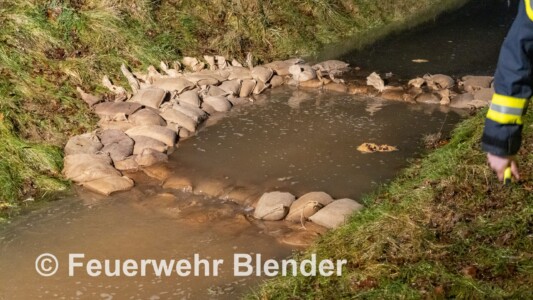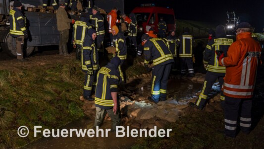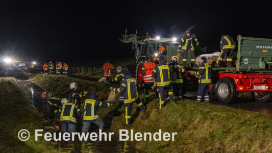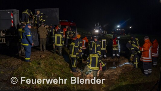Nachdem wir zusammen mit den Kamerad/-innen der FFW Intschede und der Unterstützung des Bauhofes Blender sowie eines ortsansässigen Landwirts die Quellkaden (auf Weisung des THW-Verantwortlichen) errichtet hatten, konnten wir zurück zum Gerätehaus rücken.