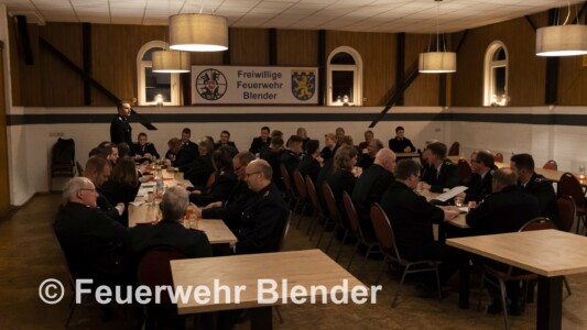 Weiter berichtete Udo Grieme von 24 Einsätzen im Jahr 2023 (10 Einsätze mehr als im Vorjahr). Die Einsätze teilten sich auf in 6 Verkehrsunfälle – 8 technische Hilfeleistungen – 6 Brandeinsätze – eine Menschenrettung – ein Fehlalarm und 2 Einsätze mit der Kreisfeuerwehrbereitschaft. Die Dienstbeteiligung war mit insgesamt 4277 Dienststunden sehr hoch. Zum Vergleich: Im Vorjahr waren es „nur“ 3078 Dienststunden. Das ist ein Zeichen dafür, dass die Ortsfeuerwehr Blender erneut ihrer Aufgabe Retten – Bergen – Löschen – Schützen in vollem Umfang gerecht geworden ist.