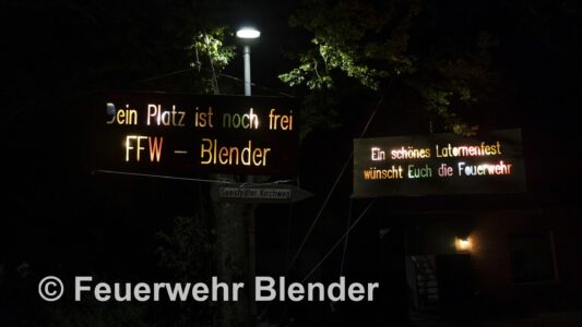 Von einem gelungenen Abend kann man beim alljährlichen, sehr gut besuchten Laternenfest am 10. Oktober sprechen. Um 19 Uhr luden unser Bürgermeister, der Spielmannszug Blender, unser Kindergarten, unsere Grundschule, unsere Krippe und unsere Freiwillige Feuerwehr Blender zum jährlichen Laternelaufen ein.