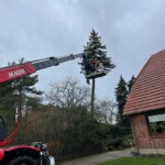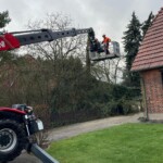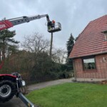 So wurde ein ortsansässiges Unternehmen mit einem Steiger angefordert, so dass der Baum fachgemäß heruntergeschnitten werden konnte.